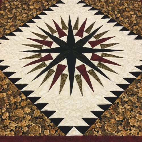 The Mariner’s Compass quilt pattern has been known and loved among dedicated quilters, only the best of whom could manage the intricacies of stitching the precise points of the compass or star, as it was variously known. While most early quilts were simple, the Mariner’s Compass quilt was complex, and often was reserved for special occasions.